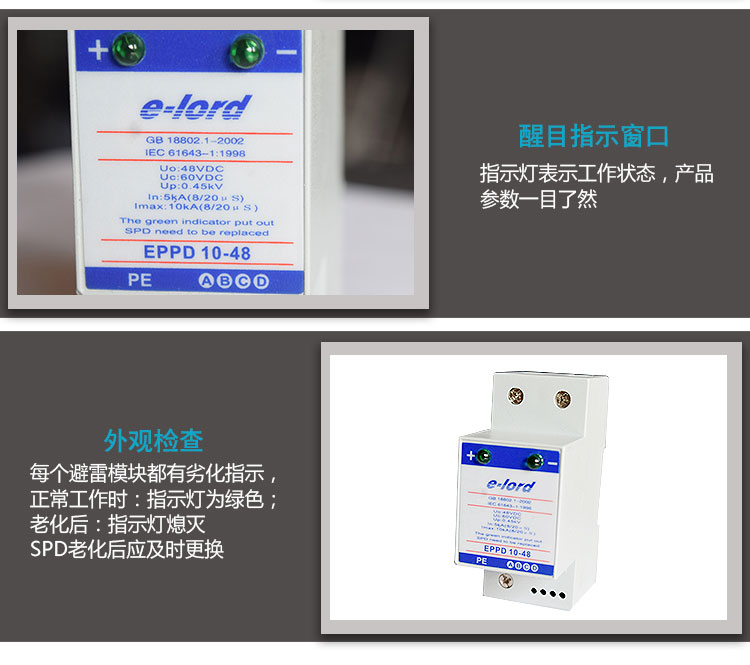 EPPD系列低壓直流型電源SPD是單體電源防雷模塊,防止感應(yīng)過電壓或操作過電壓對(duì)低壓交流用電設(shè)備的損壞。
