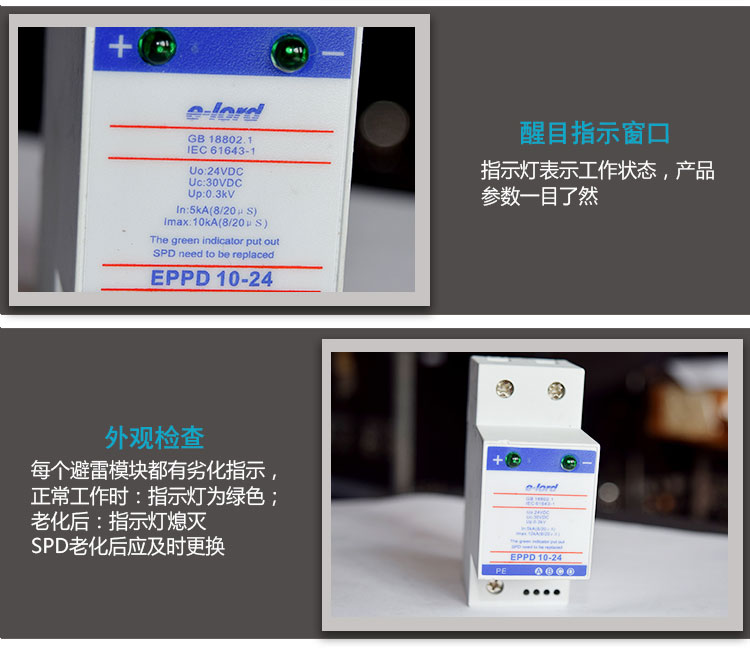 EPPD系列低壓直流型電源SPD是單體電源防雷模塊,防止感應(yīng)過電壓或操作過電壓對低壓交流用電設(shè)備的損壞。